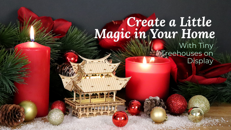 Every 3D puzzle comes with battery operated LED lights to give your Tiny Treehouse and plants a warm and magical glow.