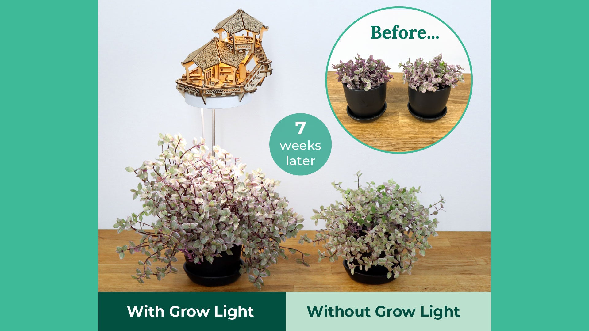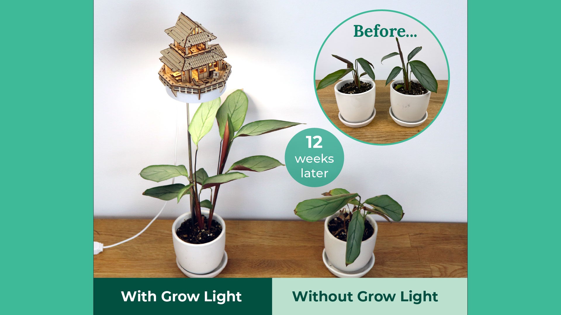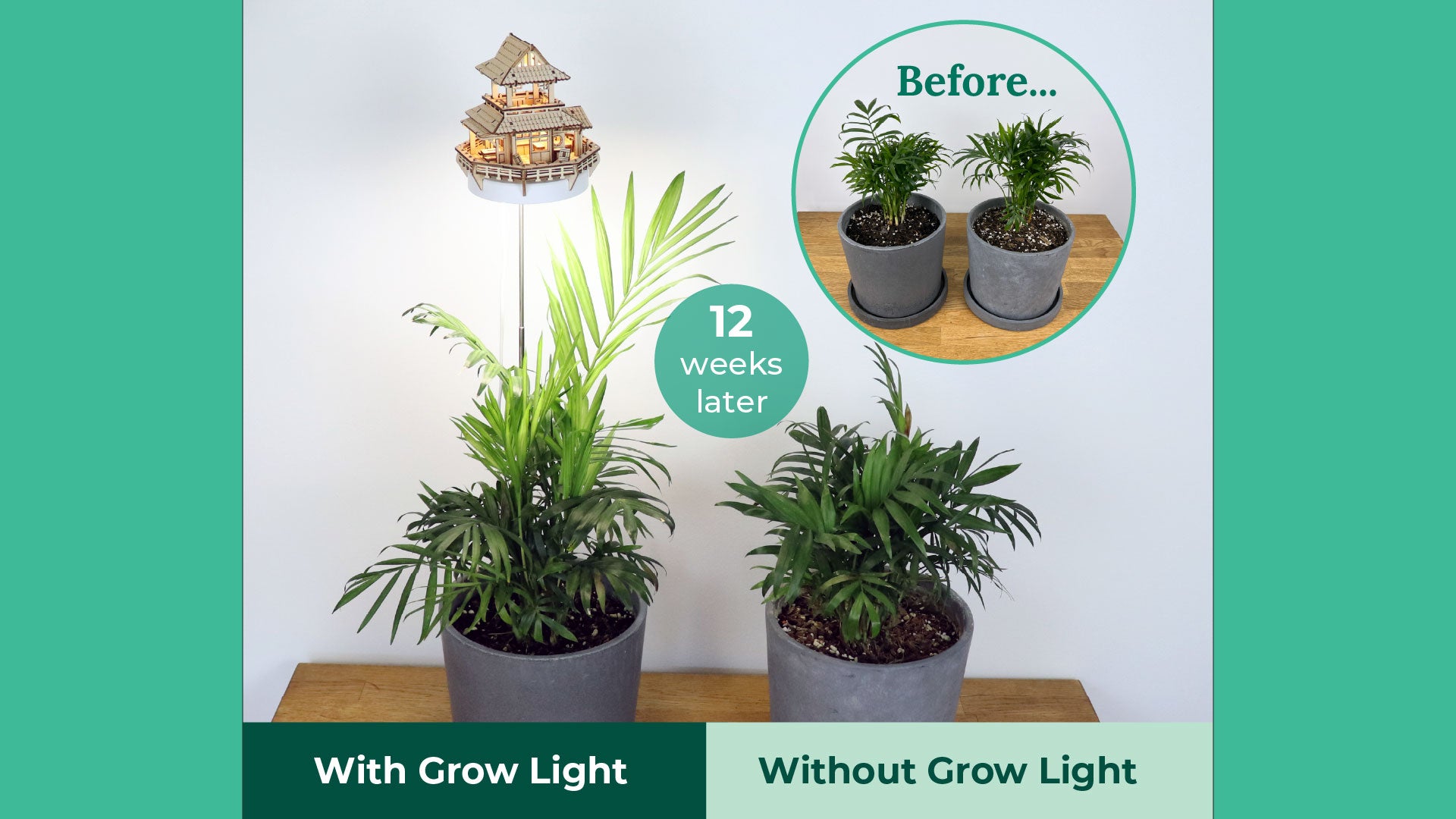 The difference is clear - after just 2-3 months, the plants grown under our treehouse grow lights are thriving: taller, lusher, and visibly healthier than the ones grown without. Designed to replicate natural sunlight, the full-spectrum LED helps your plants flourish year-round, even in dim corners of your home.