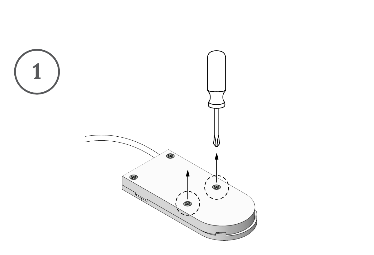 Unscrew the two (2) screws nearest the curved edge of the battery compartment