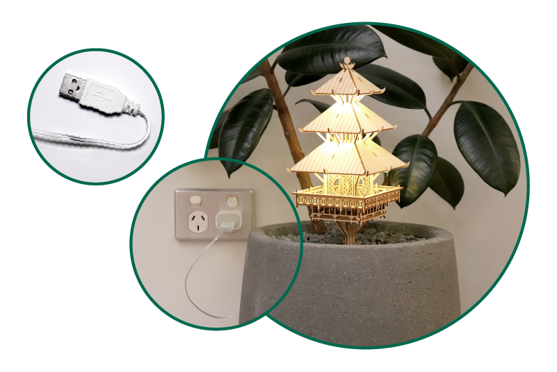 These lights have a USB plug instead of a battery compartment, so you can plug it into a USB port to light up your treehouse. Great if you want to light up your tree house frequently!